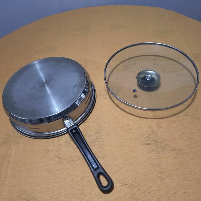 Sprzedam zwykłą patelnię z pokrywką jak pokazuje zdjęcie w bardzo dobrym stanie bez uszkodzeń.Srednica wynosi 27 ...