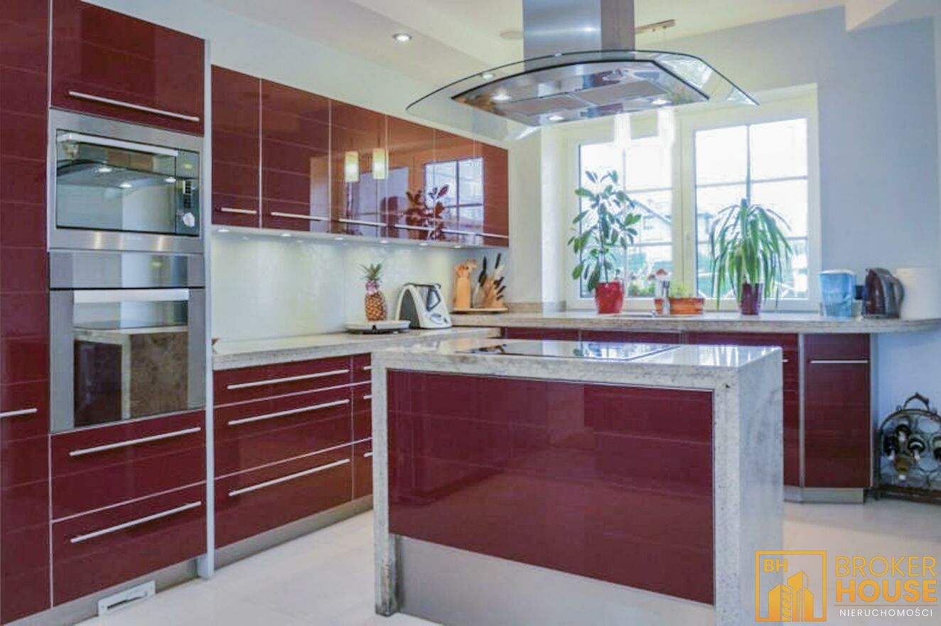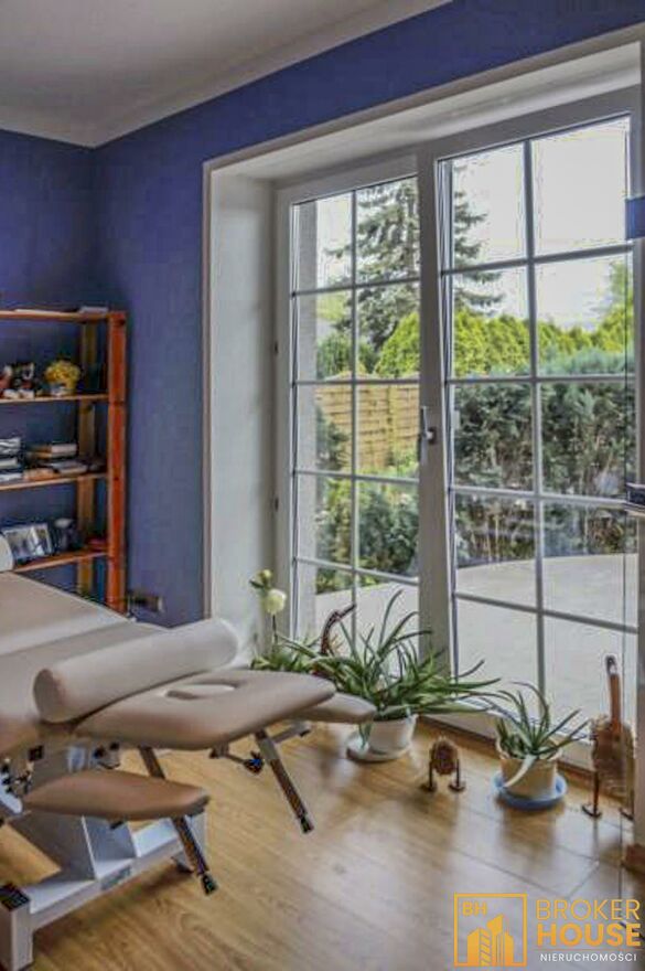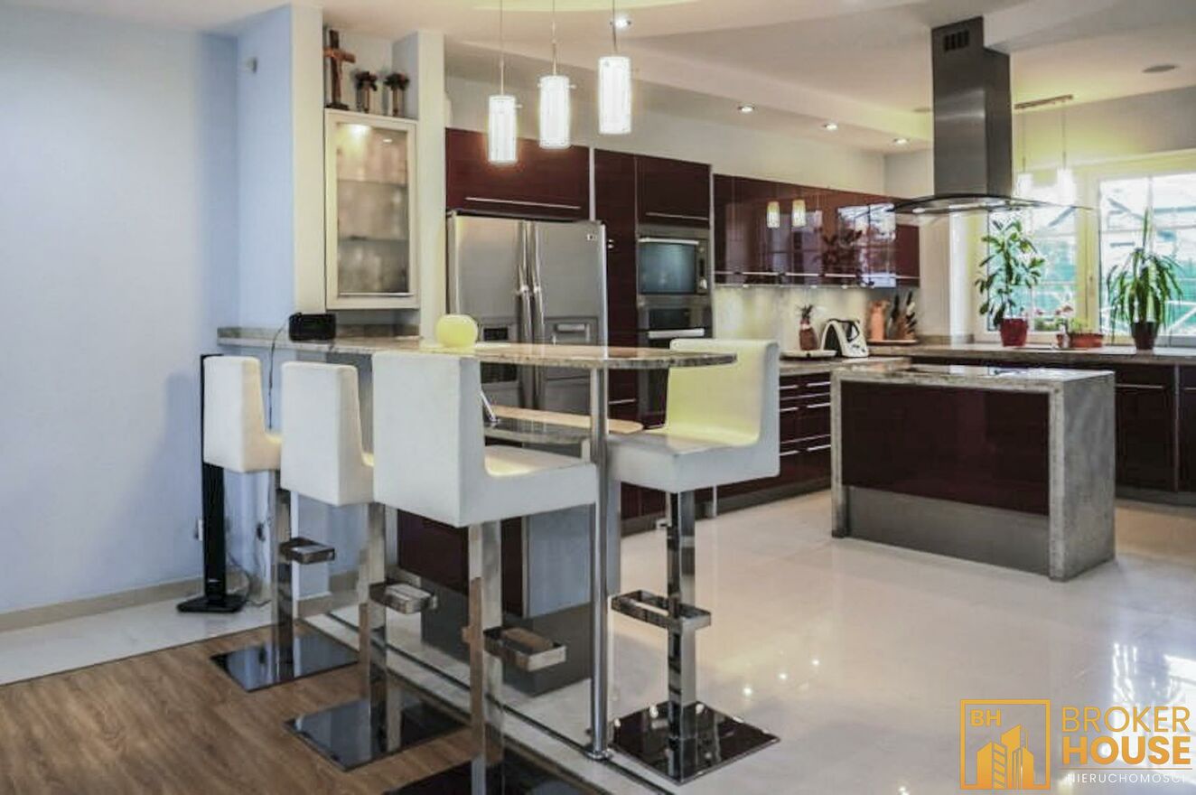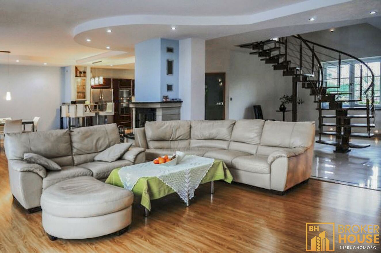 Nieruchomość z przeszklonym basenem w połączeniu z salonem o powierzchni 270m2 oraz dodatkowo na działce znajduje się budynek z mokrą i suchą sauną, garażami, gabinetem i mieszkaniem o łącznej powierzchni 160m2. Basen podświetlany z rozsuwanym dachem i bocznymi ścianami, mogący pełnić swoją funkcję zarówno w lecie jak i w zimie, ponadto bieżnia, jacuzzi, system pochłaniania pary wodnej. Budynek usytuowany na pięknie zagospodarowanej 26arowej działce, z m.in. oczkiem wodnym, wysepką, na której znajduje się rekreacyjna altanka z drewnianych bali, dachem pokrytym strzechą trzcinową, grillem, wędzarnią. Ponadto w ogrodzie wiele ozdobnych roślin, skalników, dekoracyjnych kamieni. Garaż dwustanowiskowy w wolnostojącym budynku, nad którym znajduje się 2-pokojowe mieszkanie z balkonem, kuchnią i łazienką. Posesja wyłożona kostką granitową, ogrodzona ze stali nierdzewnej, brama wjazdowa z automatycznym sterowaniem. System zabezpieczenia alarm z powiadomieniem.