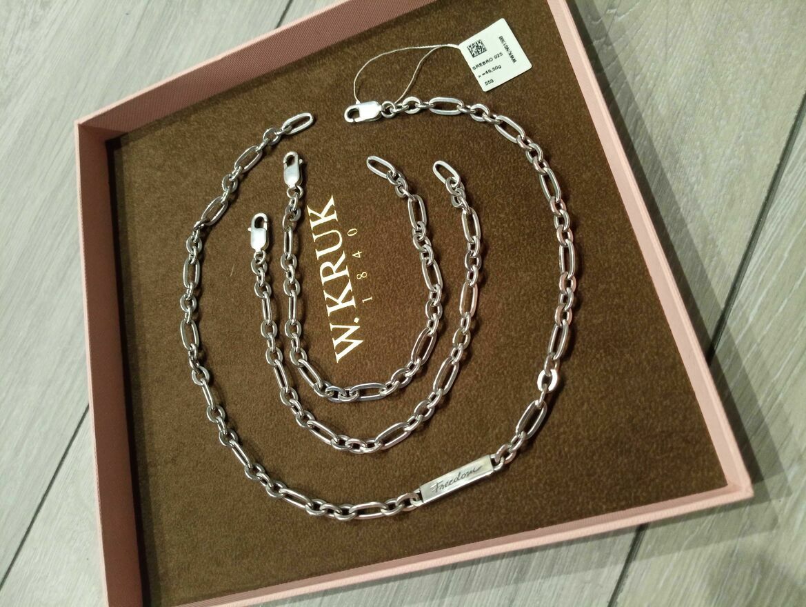 Dwie bransoletki srebrne, 925 i łancuszek z Freedom