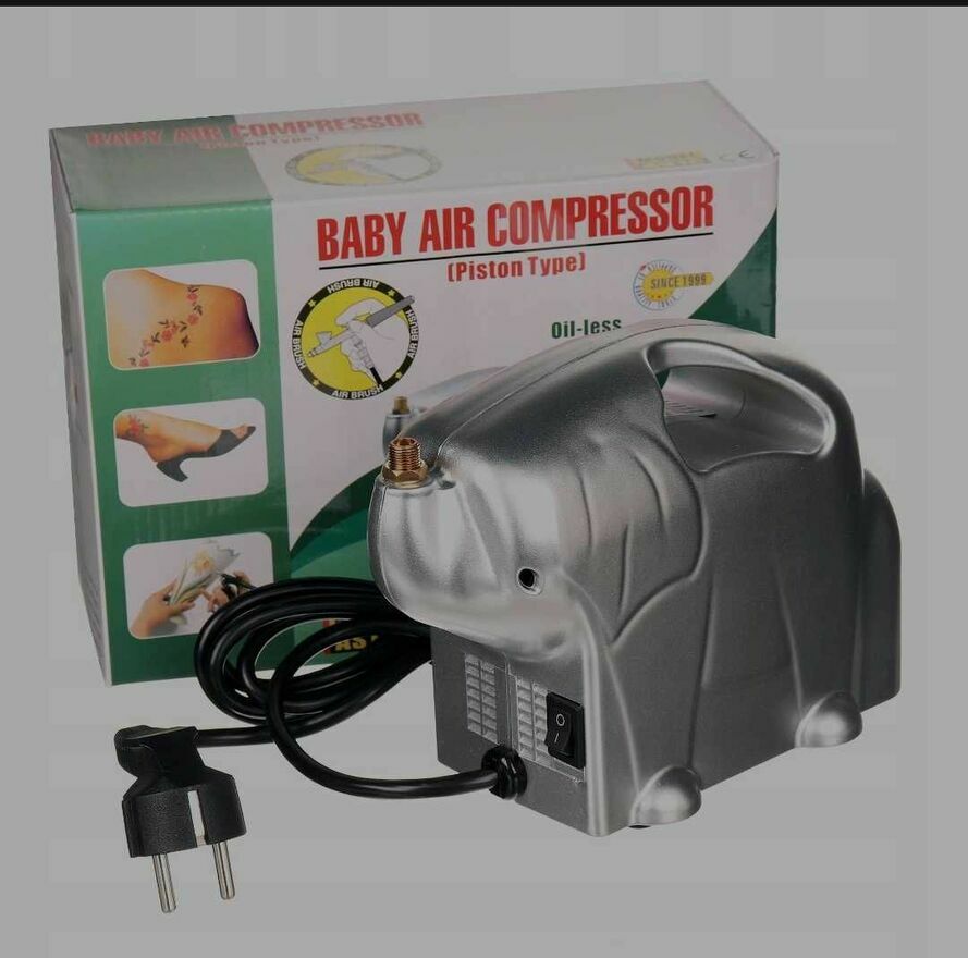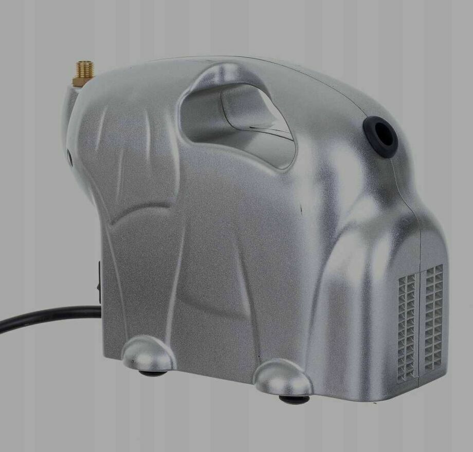 Stylowy kompresor w kształcie słonika, pasujący do każdego salonu modelarskiego czy kosmetycznego.