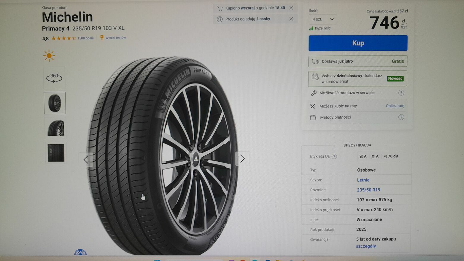 Opony Michelin Primacy 4, 235/50R19 103 XL uzywane przejechał 9960 km Cena za 4 szt. preferowany odbiór osobistyAndrzej
