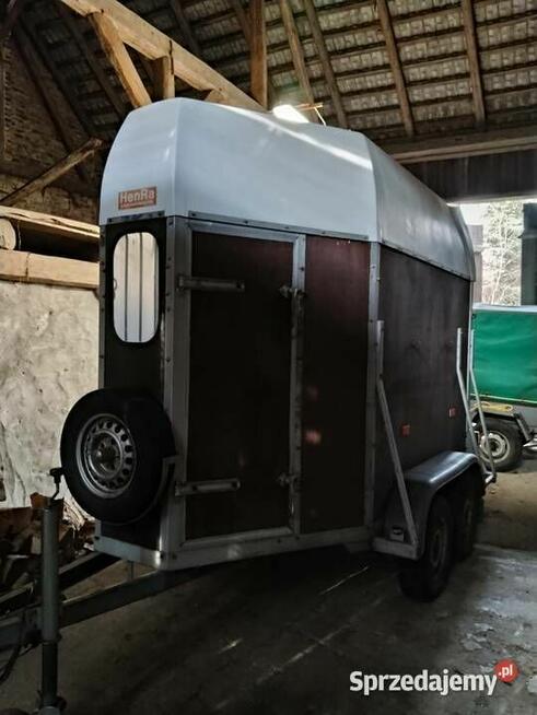 Przyczepa do przewozu koni firmy Henra. Sprawna, w bardzo dobrym stanie, przegląd techniczny do maja. Odmalowany dach, ...