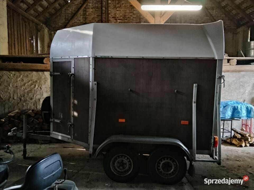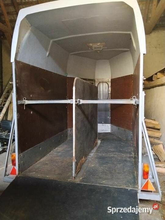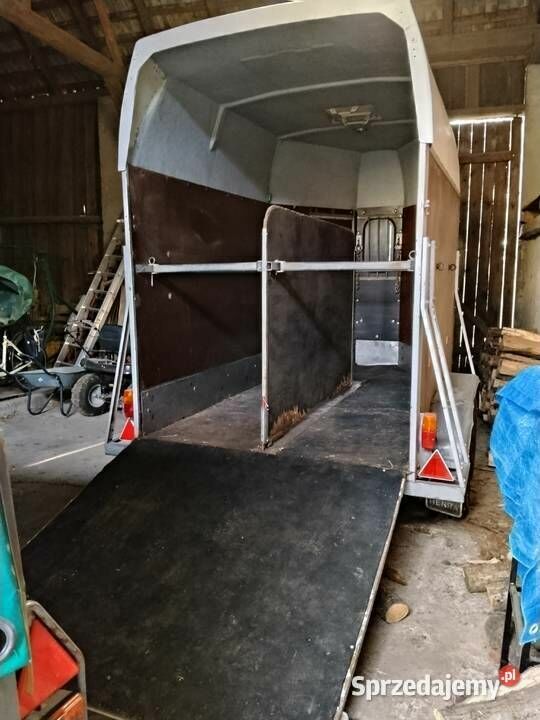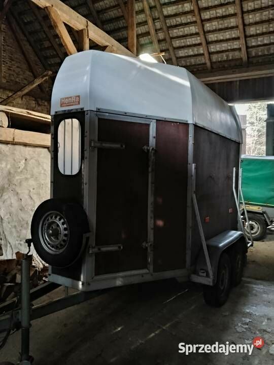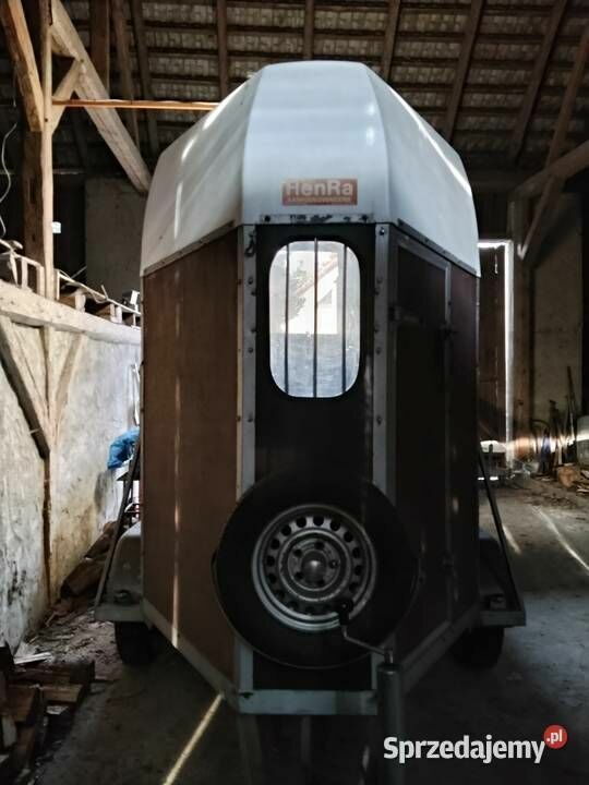 Przyczepa do przewozu koni firmy Henra. Sprawna, w bardzo dobrym stanie, przegląd techniczny do maja. Odmalowany dach, zamontowany nowy zaczep. Wymaga jedynie lekkich poprawek estetycznych. Rok produkcji 1991. W dowodzie DMC 1200 kg. Możliwość obejrzenia w okolicy Kędzierzyna-Koźla.Aneta